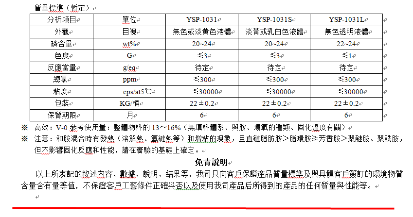 YSP-1031系列(lie)適合胺(an)固化環(huán)氧樹脂(zhi)無鹵阻(zǔ)燃體系(xi),其反應(yīng)基與等(děng)當量的(de)環氧樹(shù)脂交聯(lian)反應(固(gu)化)。